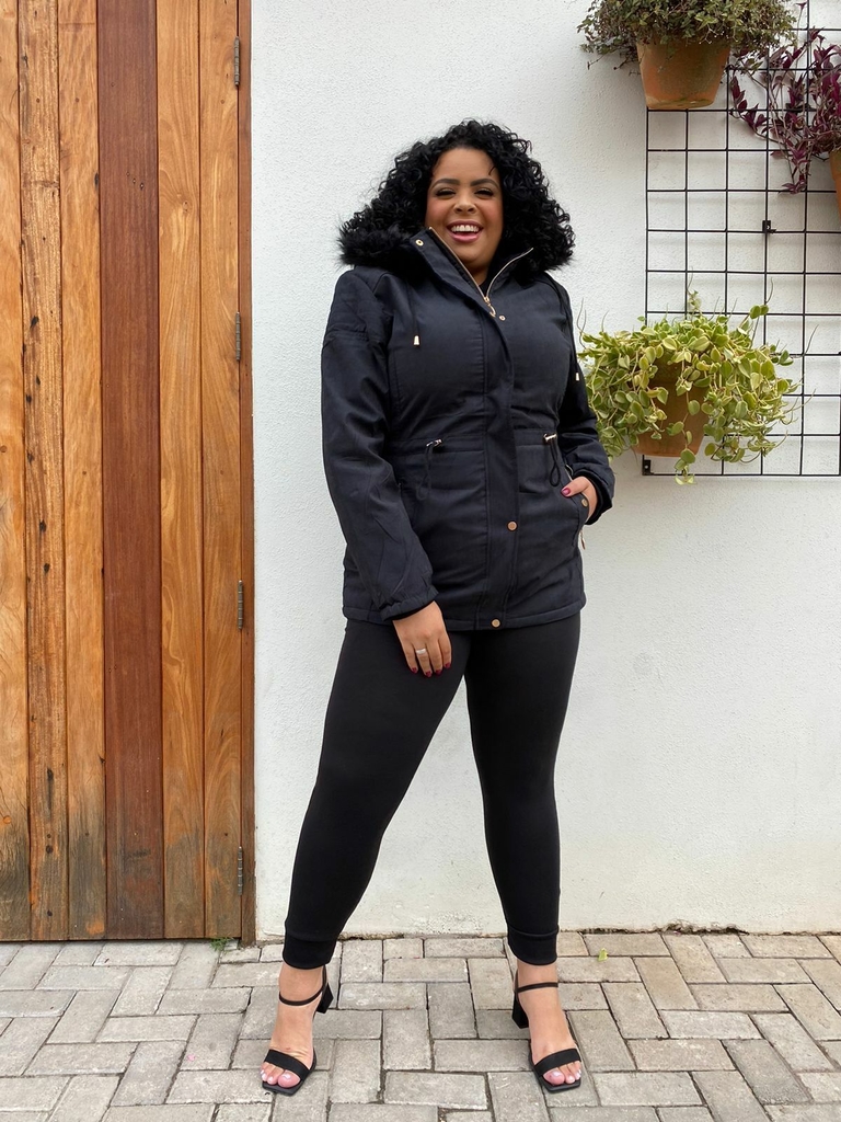 Esse parka se destaca pelo seu comprimento alongado e por ser forrada na parte do corpo, frente e costas.